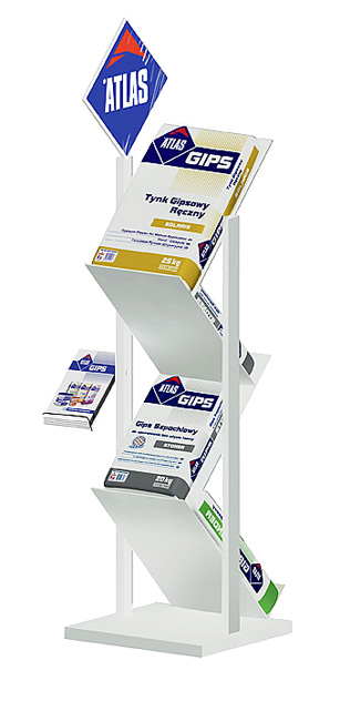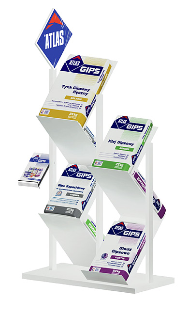 Projekt stojaka na worki z gipsem. Forma dopasowana do logotypu atlasu.