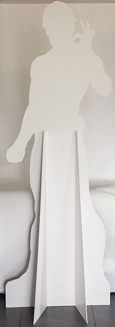 Postać wykonana z PCV 8mm, podparta nogą wykonaną z PCV 3mm. Stojak tego typu może przedstawiać dowolną postać. Postać jest wycięta po kształcie. Wytrzymała konstrukcja.