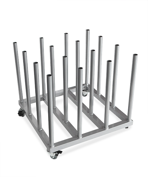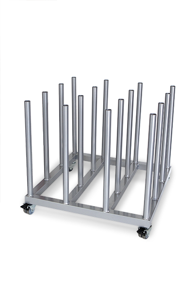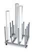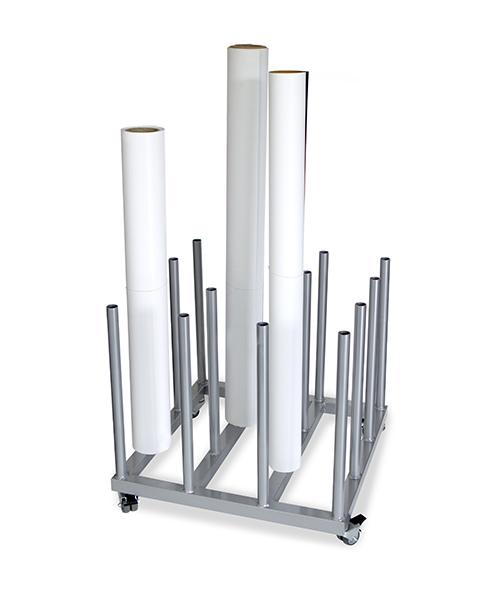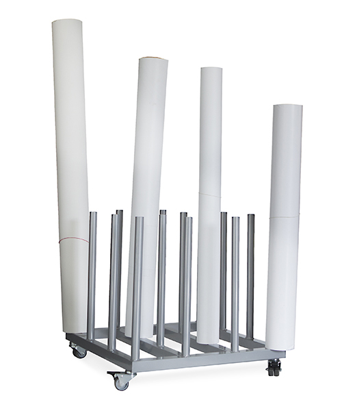 Zaprezentowany stojak jest przeznaczony do magazynowania materiałów w rolach (mogą to być, np.: media do plotera, folie, materiały krawieckie). Można na nim przechowywać 16 rolek, które łącznie ważą do 500 kg. Stojak jest wykonany z metalu i pomalowany na szaro. Posiada cztery podwójne gumowe kółka, każde z nich ma hamulec, dzięki czemu przesuwanie nawet kilkuset kilogramów staje się o wiele łatwiejsze. Na stojaku można przechowywać maksymalnie 16 rolek. Rurki, na które nakłada się rolki stoją w 20-centymetrowych odstępach. Każda rurka jest wysoka na 40 cm, a jej średnica ma 3cm .