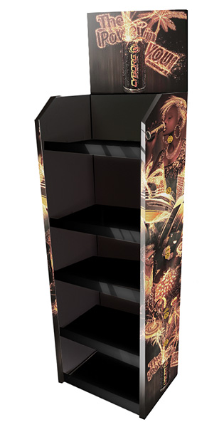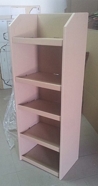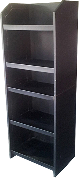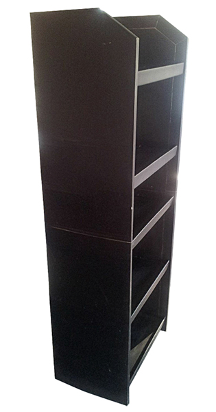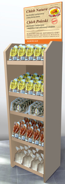 Uniwersalny regał z tektury z półkami o dużej wytrzymałości i nośności (do 25 kg). Cały stojak może być oklejony grafiką. wydruki kaszerowane i laminowane naklejane na tekturę. Dobry projekt może sprawić, ze produkty Państwa firmy zaistnieją w sklepie.